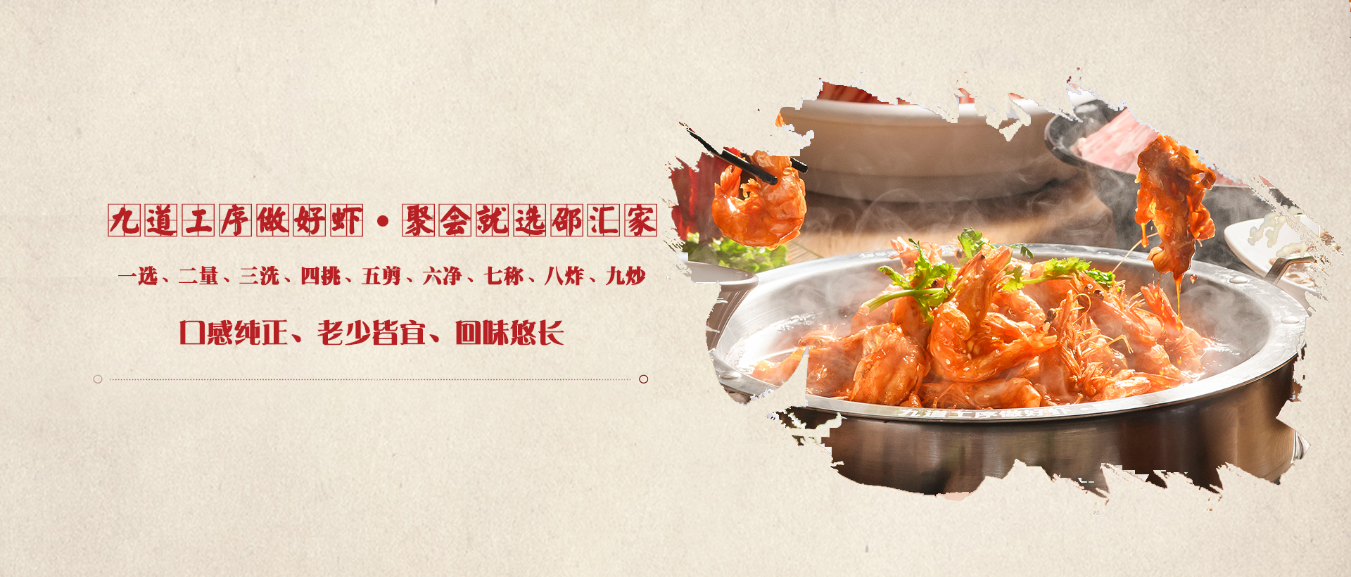 邵匯大蝦擁有強大的后勤保障部門,核心底料由公司中央工廠集中配送,食材精選進口大蝦,搭配秘制底料制作而成,研發(fā)出一鍋兩吃的飲食模式(先吃蝦后涮菜,葷素搭配隨心選),打造出綠色健康的飲食新文化。